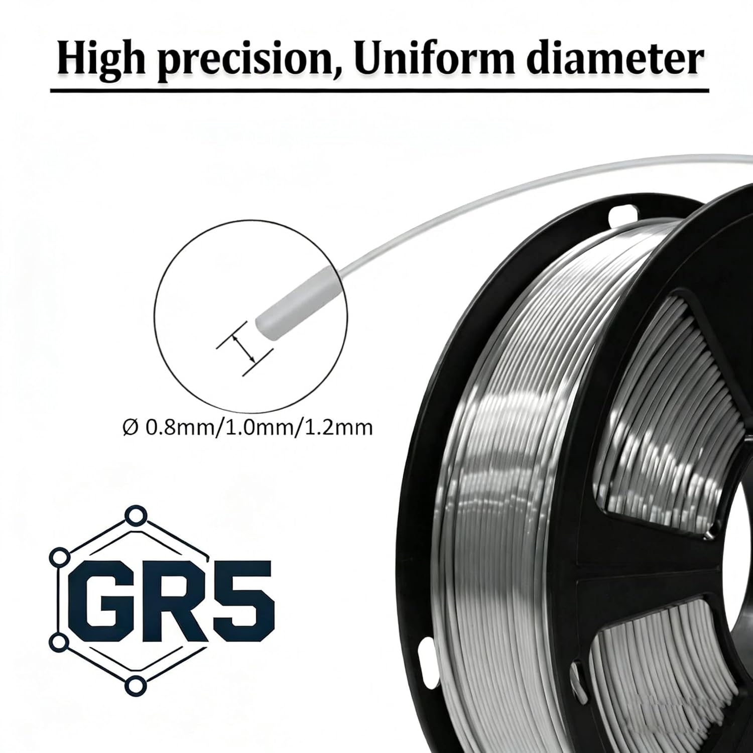 Titansmith 10Kg TC4 Titanium Alloy Wire, High-Strength Gr.5 Ti-6Al-4V Wire, Diameter 0.8/1.0/1.2mm for Industrial Welding, Aerospace & 3D PrintingAbout GR5 Titanium Alloy (Ti-6Al-4V):1. Premium Grade 5 Titanium Alloy – Ti-6Al-4V (UNS R56400), the most widely used alpha-beta titanium alloy. Meets ASTM B863 & AWS A5.16 ERTi-5 standards. Offers twice the strength of GR2.2. Key Properties – Low density (4.51 g/cm³), exceptional strength-to-weight ratio (~2x 304 stainless steel). Outstanding corrosion resistance, non-magnetic, and biocompatible.3. Superior Strength – Tensile ≥895 MPa, yield ≥828 MPa (annealed). High load-bearing capacity with excellent fatigue resistance.4. Weldable & Printable – ERTi-5 grade for TIG/MIG welding (argon shielding required). Ideal for additive manufacturing (WAAM, LMD) with stable composition.5. Applications – Aerospace structures, medical implants, chemical processing, automotive/motorsport, marine engineering, and advanced 3D printing.Physical Performance Parameters:1.Density: 4.51 g/cm³ – 40% lighter than steel, ideal for weight-sensitive applications 2.Melting Point: 1604 – 1660 °C – High-temperature resistance for demanding environments3.Tensile Strength (UTS): ≥ 895 MPa (≥ 130 ksi) – Double the strength of GR2, suitable for load-bearing applications4. Yield Strength (YS): ≥ 828 MPa (≥ 120 ksi) – 0.2% offset yield strength in annealed condition5. Modulus of Elasticity: 110 – 114 GPa – Optimal stiffness-to-weight ratio for structural applications 6.Thermal Conductivity: 6.7 W/m·K (at 20°C) – Suitable for high-temperature applications up to 300°C Package Includes:1 Roll x 10kg Titanium Alloy Wire GR5 Please note:Import duties are prepaid. However, any additional customs fees charged by your country upon arrival are the responsibility of the recipient.