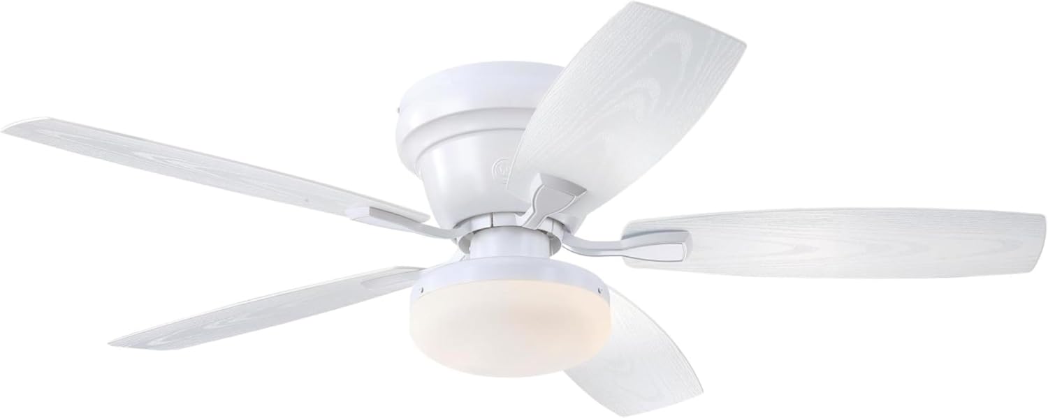 Approved for damp locations, this Westinghouse Contempra 48-inch indoor/outdoor ceiling Fan has a fresh white finish and five weatherproof white blades. Add traditional appeal to any area, while enjoying the cooling comfort. Designed especially for covered patios, decks and porches, the Contempra is a hugger-style Fan, ideal for standard and low ceilings. The stylish Contempra indoor/outdoor ceiling Fan is backed by a lifetime motor warranty and a two-year warranty on all other parts. Westinghouse is a trusted, global brand. Westinghouse knows lighting and offers products with exceptional quality, reliability and functionality. Product reference number 72172.
